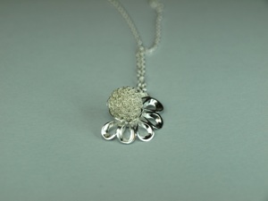 Pendant ”Half flower” in silver (inc. chain) with a center in varying colors.