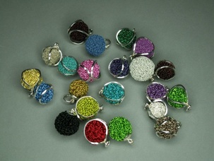 Pendants (inc. silverchain) in silverbaskets.